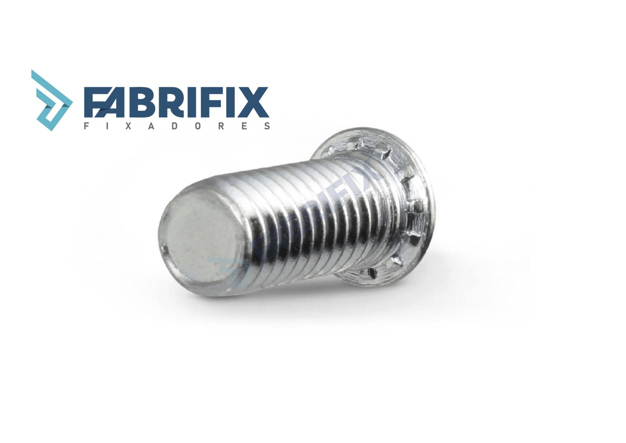 Os Parafusos/Pinos Autocravantes M6x10 (PIAM610) da FABRIFIX FIXADORES com rosca externa ou pinos/parafusos Cravantes (prisioneiro) para chapas metálicas, são soluções robustas para inserção de um parafuso à uma chapa metálica.